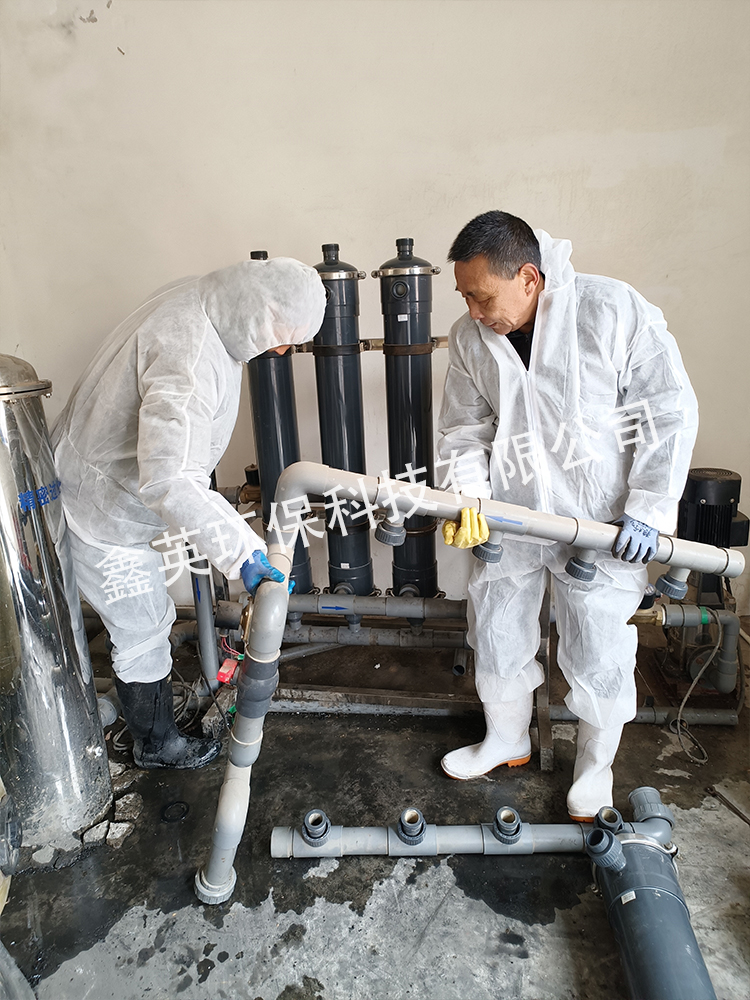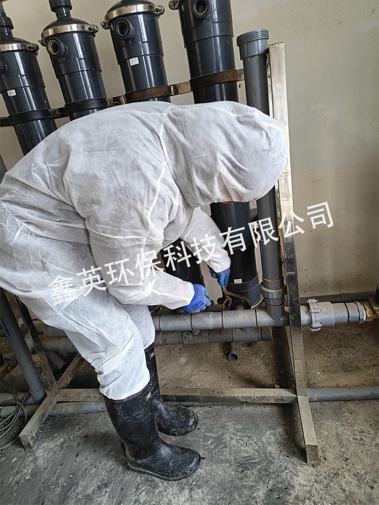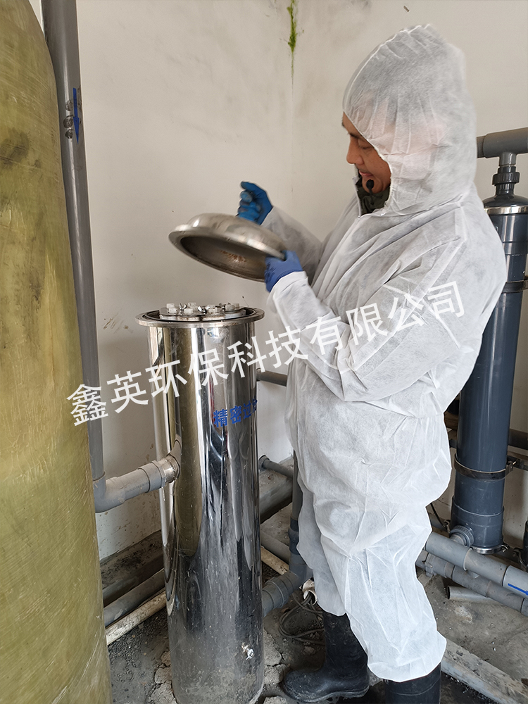 工作人員檢查并更換凈水濾芯